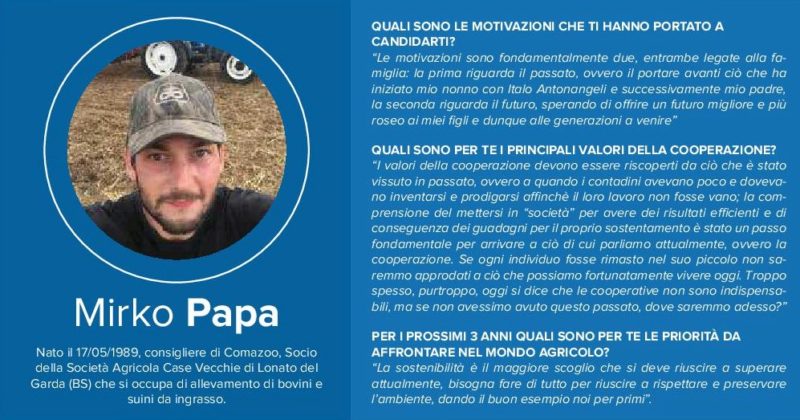 Così come per i presidenti, ad alcuni di loro sono state poste tre domande cruciali per comprendere a fondo il loro punto di vista: le motivazioni che li hanno portati alla candidatura, i principali valori della cooperazione e le priorità da affrontare nel mondo agricolo per i prossimi tre anni.