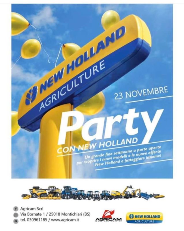 Agricam e New Holland stanno organizzando un party organizzando ad hoc per soci e amanti del famoso trattore in blu, proprio questo fine settimana, sabato 23 novembre 2019.